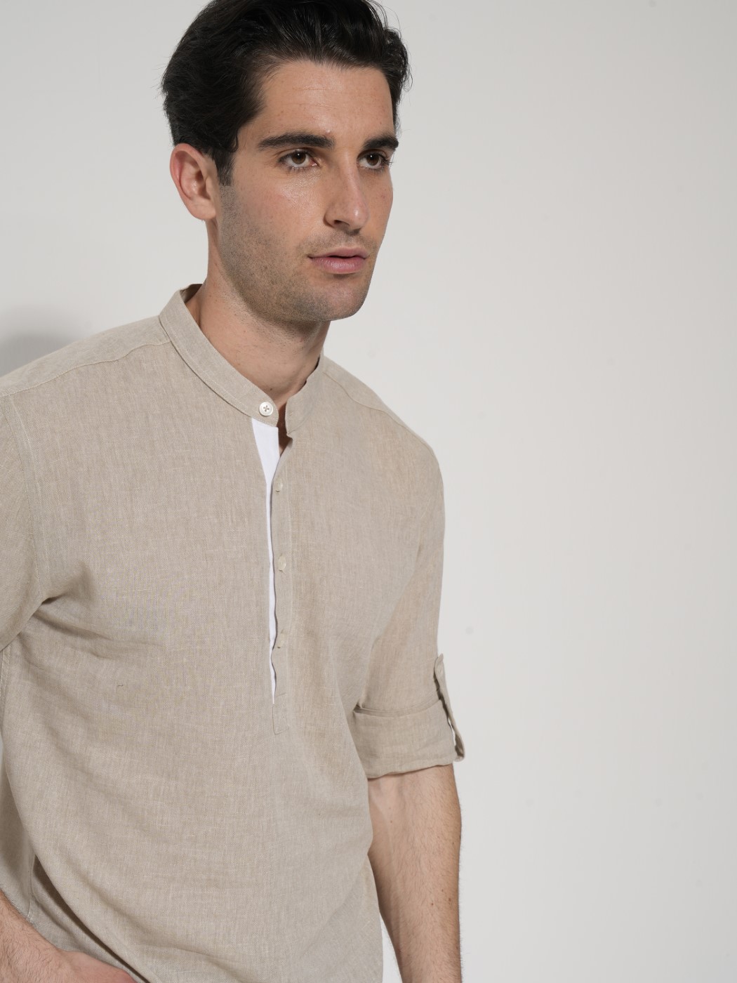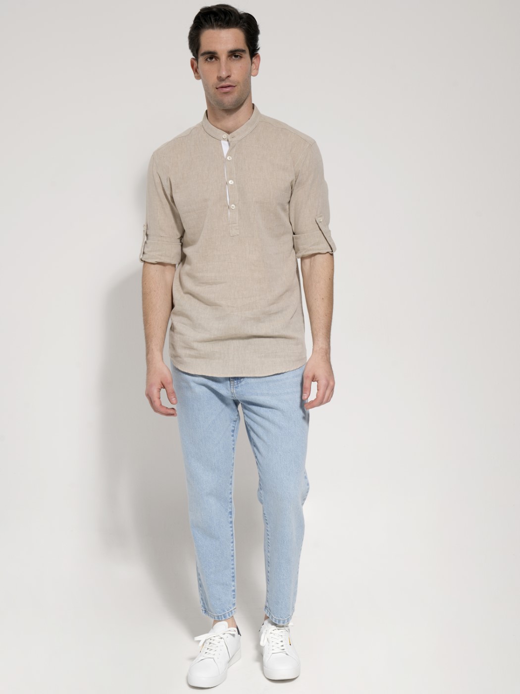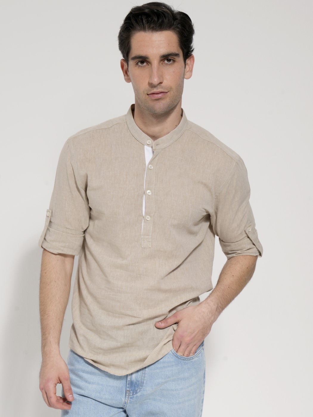 Ανδρικό Λινό Πουκάμισο Slim 33-6116 Μπεζ