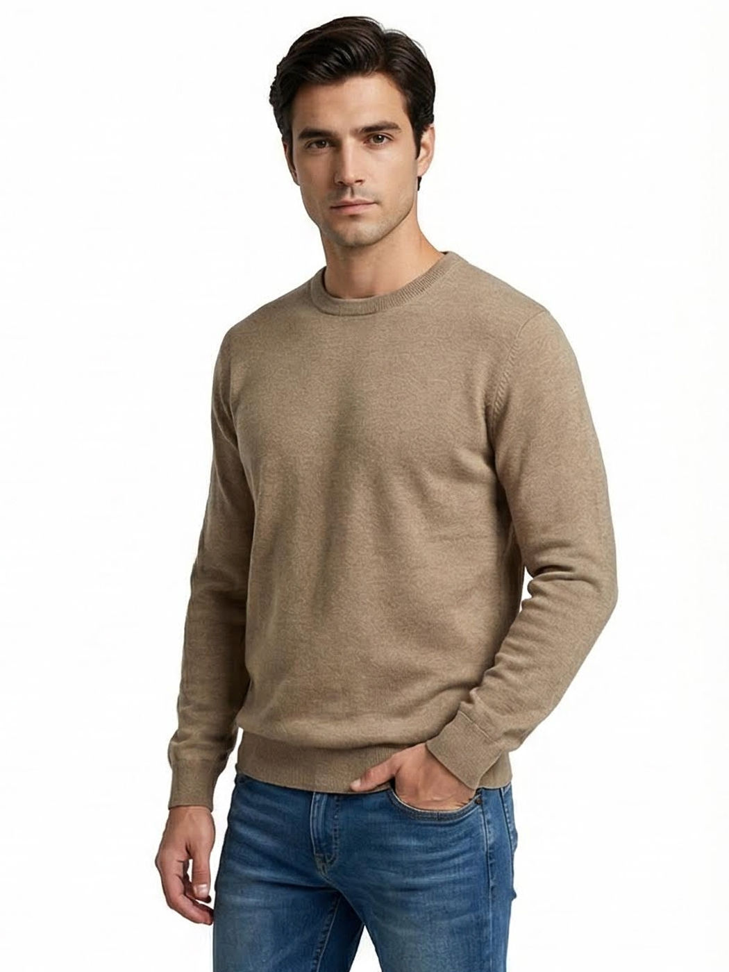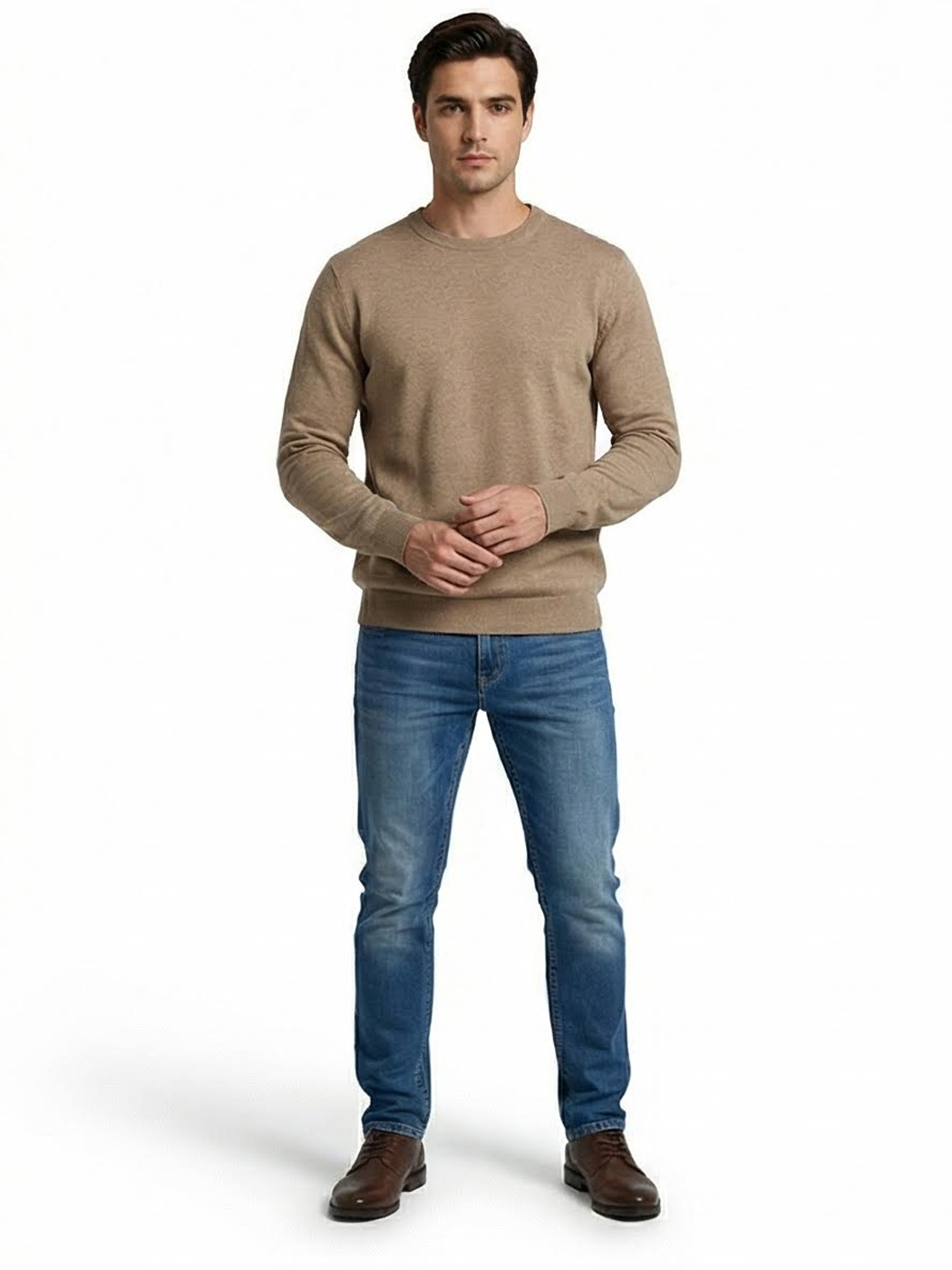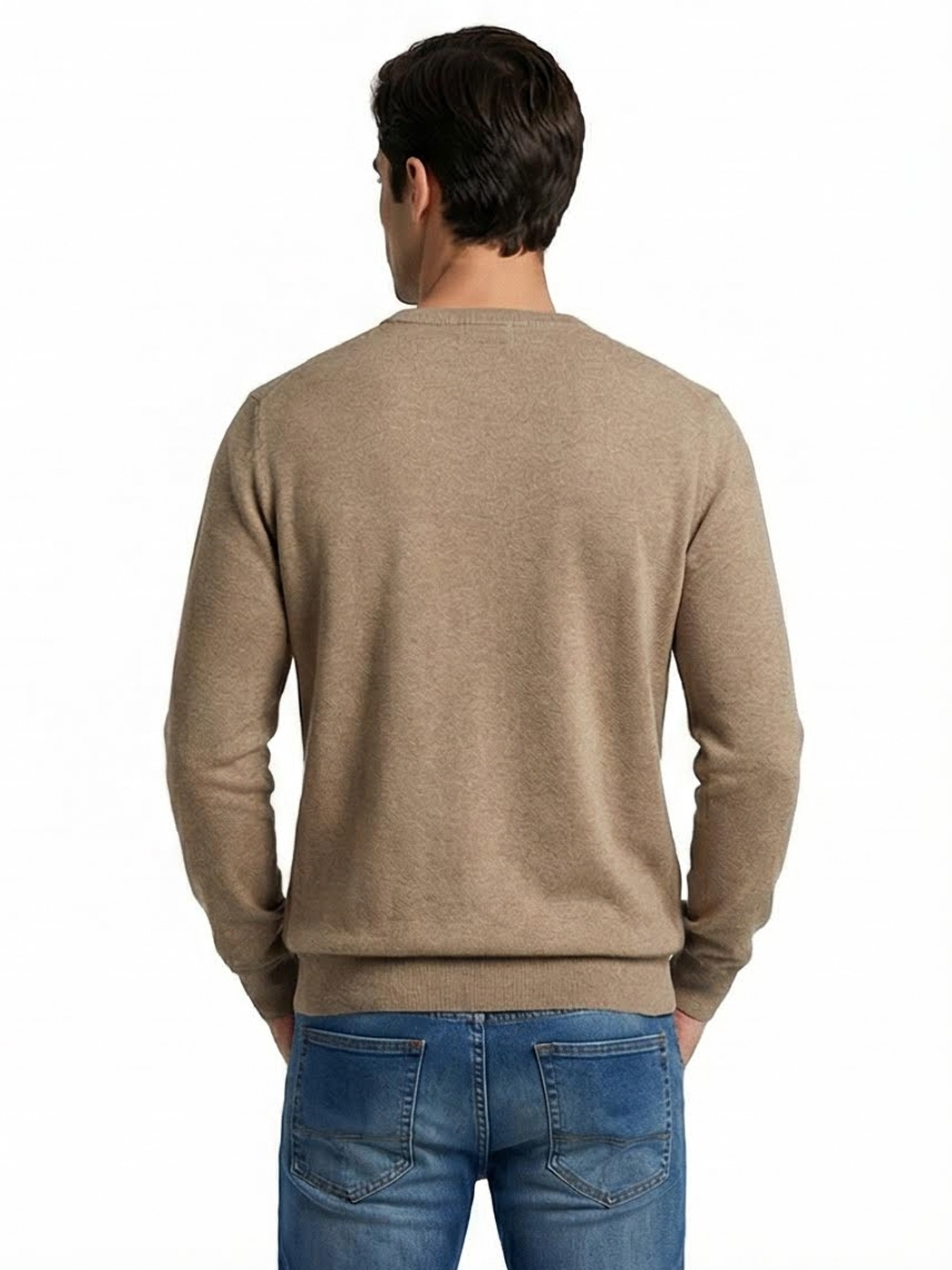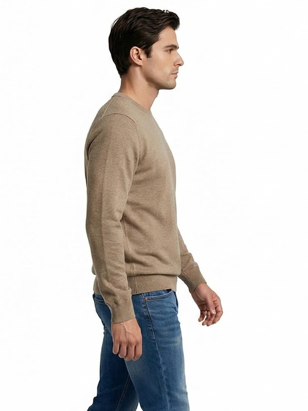 Ανδρικό Πλεκτό Πουλόβερ με Λαιμόκοψη 34-305 Μπεζ