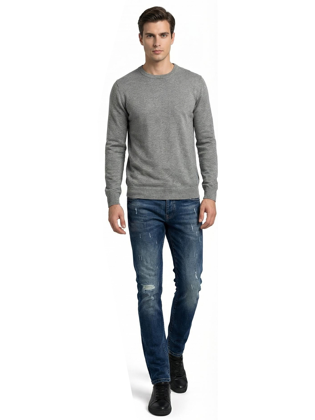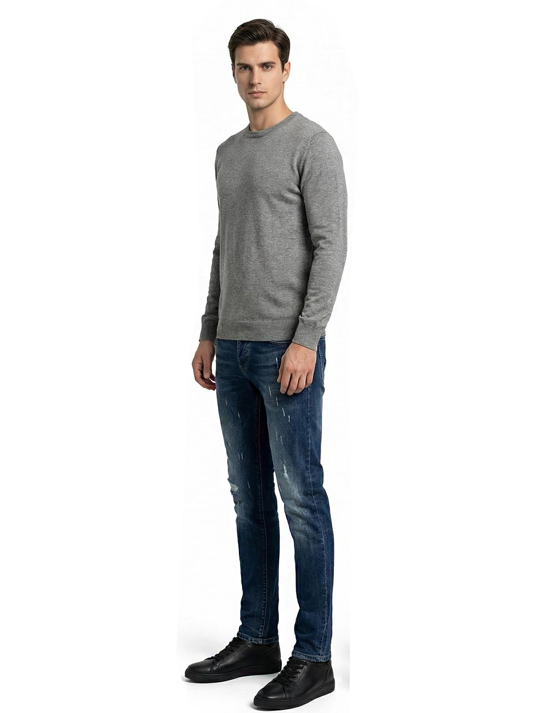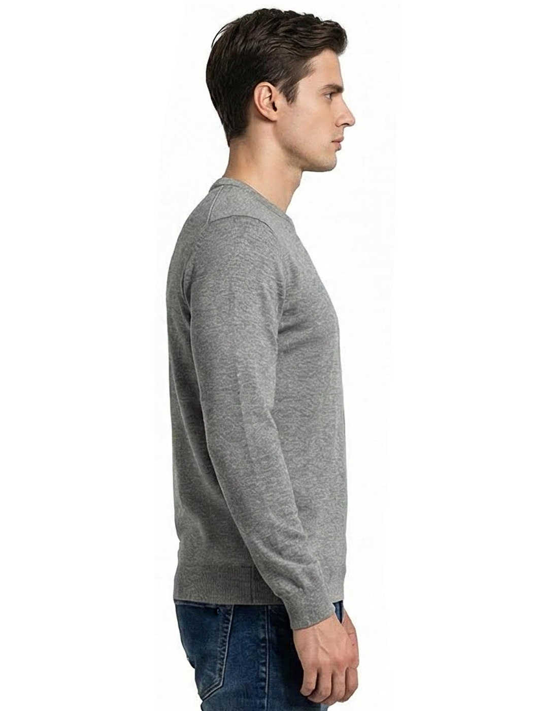 Ανδρικό Πλεκτό Πουλόβερ με Λαιμόκοψη 34-305 Γκρι
