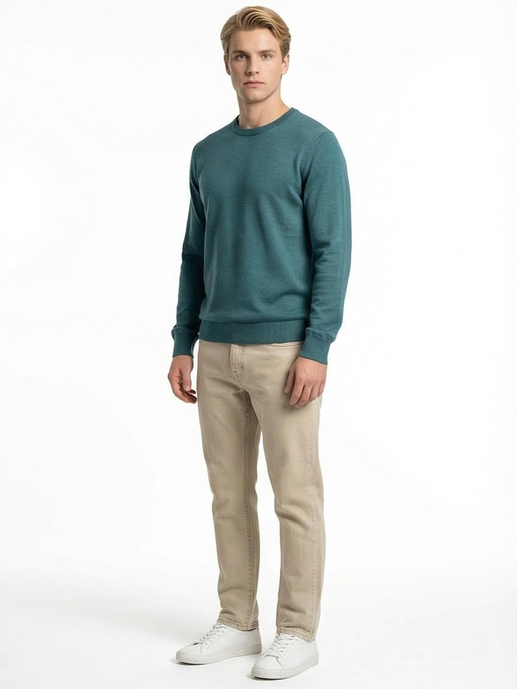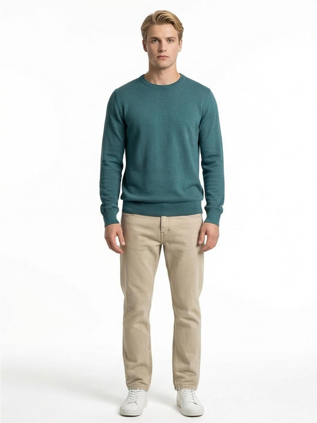 Κομψή και σύγχρονη ανδρική μπλούζα με στρογγυλή λαιμόκοψη, ιδανική για καθημερινές αλλά και πιο προσεγμένες εμφανίσεις. Κατασκευασμένη από απαλό πλεκτό ύφασμα που προσφέρει άνεση και ευχάριστη αίσθηση όλη την ημέρα. Το πετρόλ χρώμα χαρίζει ιδιαίτερο χαρακτήρα και ξεχωρίζει διακριτικά, συνδυαζόμενο εύκολα με σκούρα ή ουδέτερα παντελόνια.