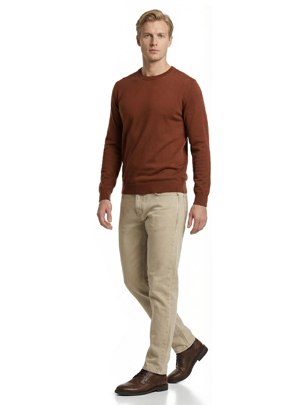 Ανδρικό Πλεκτό Πουλόβερ με Λαιμόκοψη 34-305 Camel