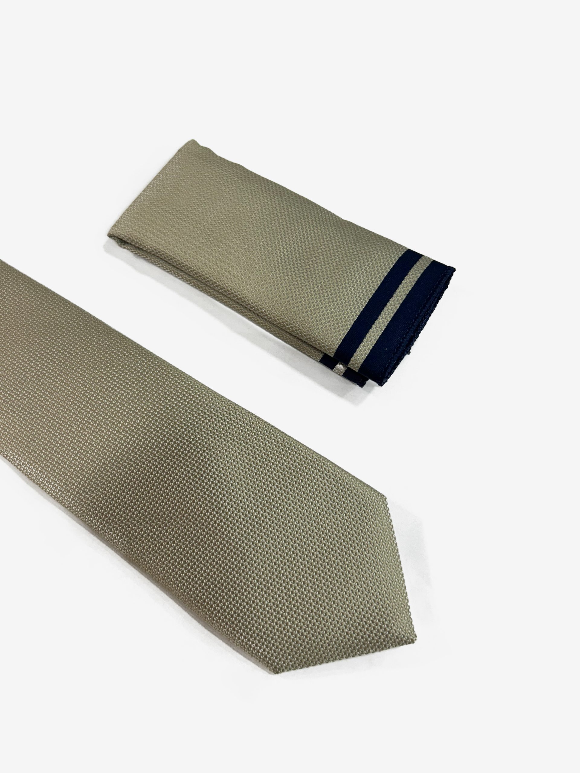 Ανδρική γραβάτα με μαντηλάκι σε λαδί 220-91