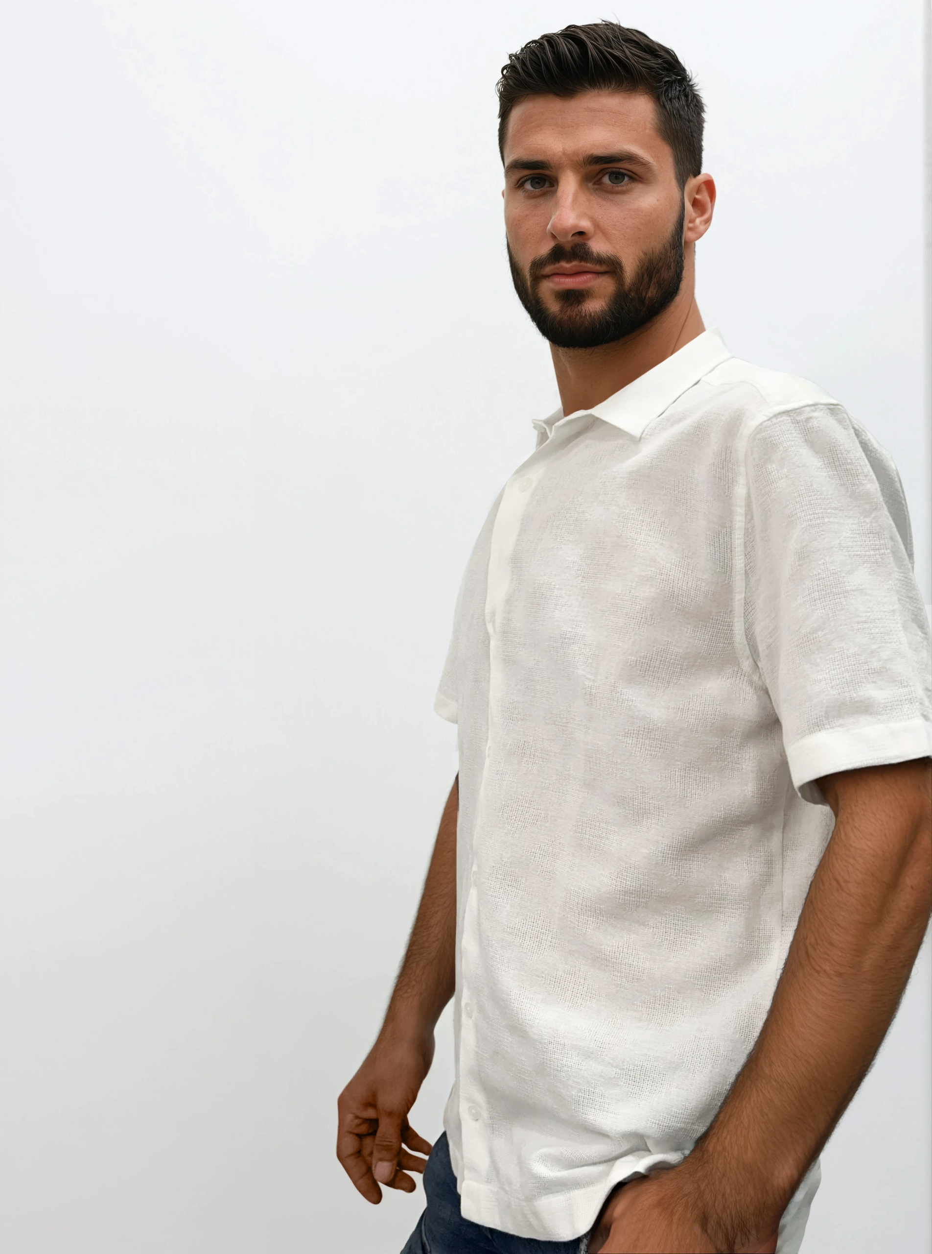 Ανδρικό Λινό Πουκάμισο 80-207 Λευκό