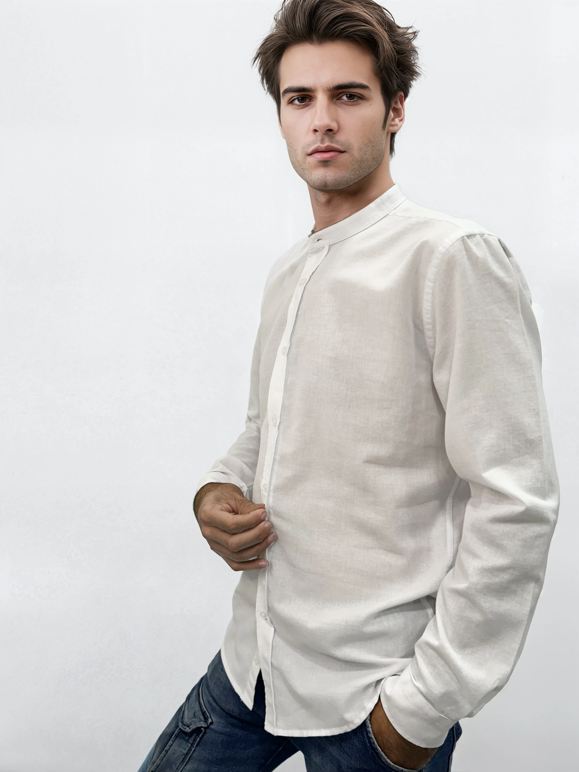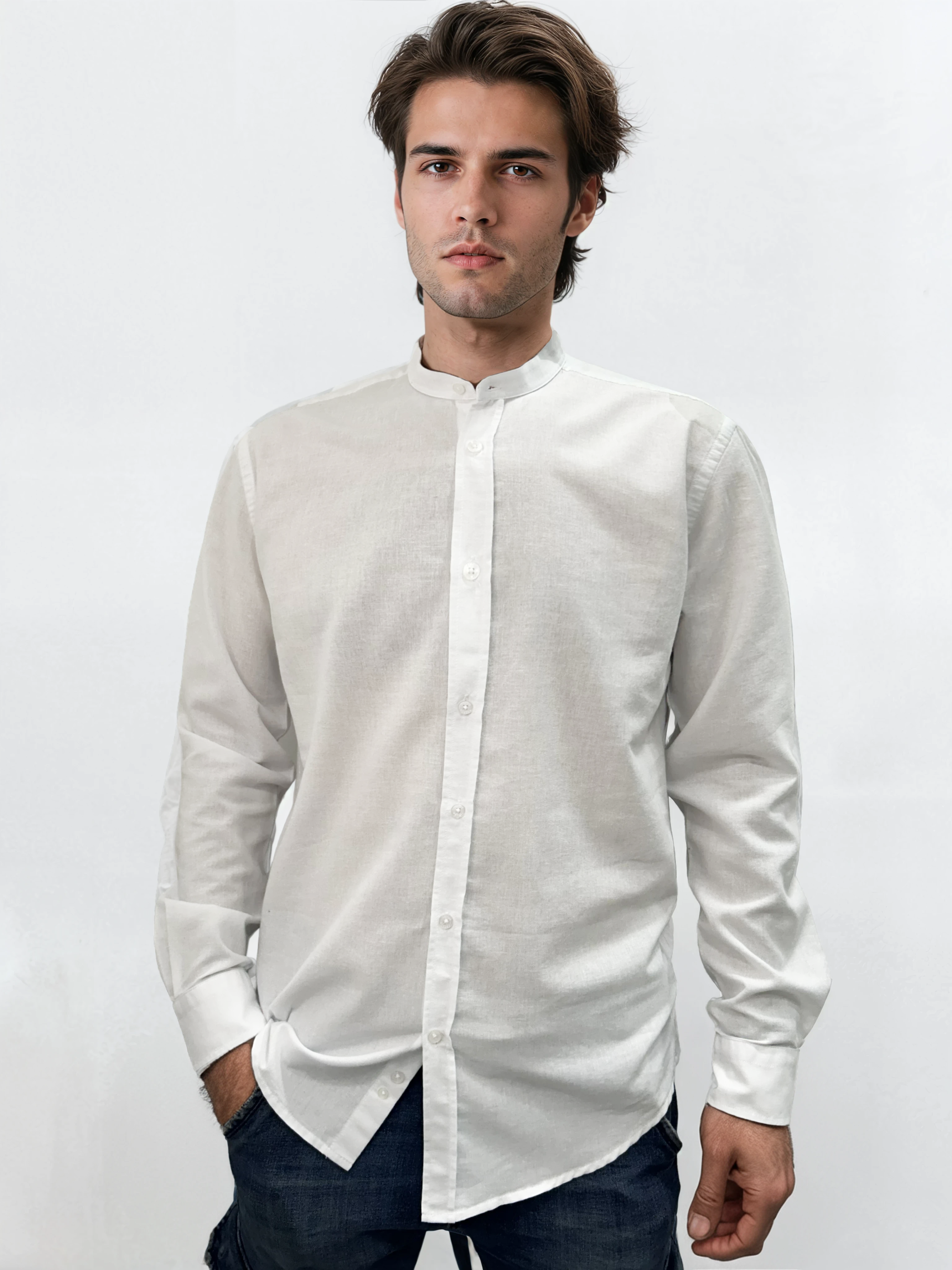 Αυτό το ανδρικό πουκάμισο από βαμβακερό ύφασμα συνδυάζει άνεση και κομψότητα σε κάθε περίσταση. Ο μοντέρνος μάο γιακάς του προσδίδει διακριτική φινέτσα, ενώ η εφαρμογή του αγκαλιάζει το σώμα προσφέροντας άψογη εφαρμογή και ευκολία κινήσεων. Η υφή του υφάσματος χαρίζει δροσερή αίσθηση, καθιστώντας το ιδανική επιλογή για κάθε εποχή.