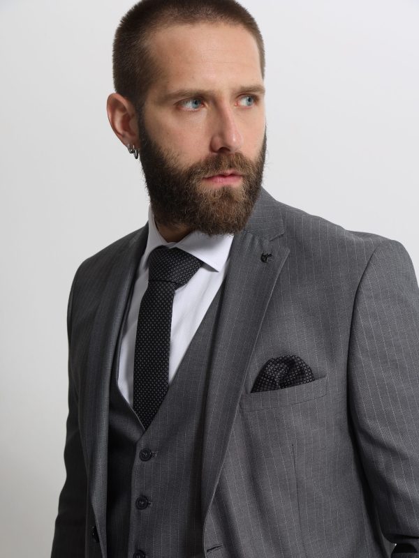 Ανδρικό Ριγέ Κοστούμι Με Γιλέκο ANTONIO 2027 Grey