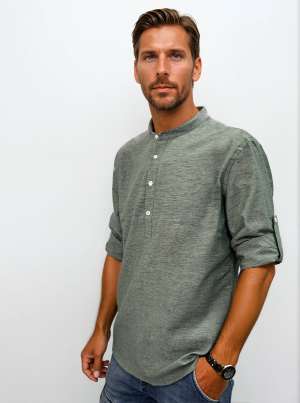 Λινή Πουκαμίσα Μακρύ Μανίκι Slim-fit LEANDRO 33-7455 Πράσινο