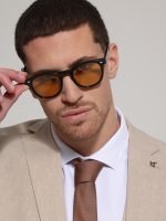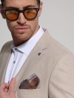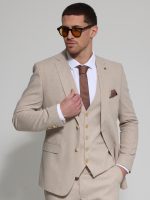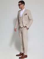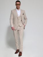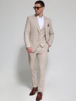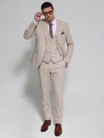 Το γιλέκο κλείνει με κουμπάκια και έχει σφιγκτήρα στο πίσω μέρος για να προσαρμόζεται άψογα στο σώμα σας. Το σακάκι με πέτο κλείνει με κουμπιά μπροστά και διαθέτει δύο τσέπες στα πλάγια, καθώς και μία εσωτερική τσέπη για επιπλέον αποθήκευση. Αυτό το κοστούμι συνδυάζει κομψότητα και λειτουργικότητα, κάνοντάς το απαραίτητο για κάθε ανδρική γκαρνταρόμπα.