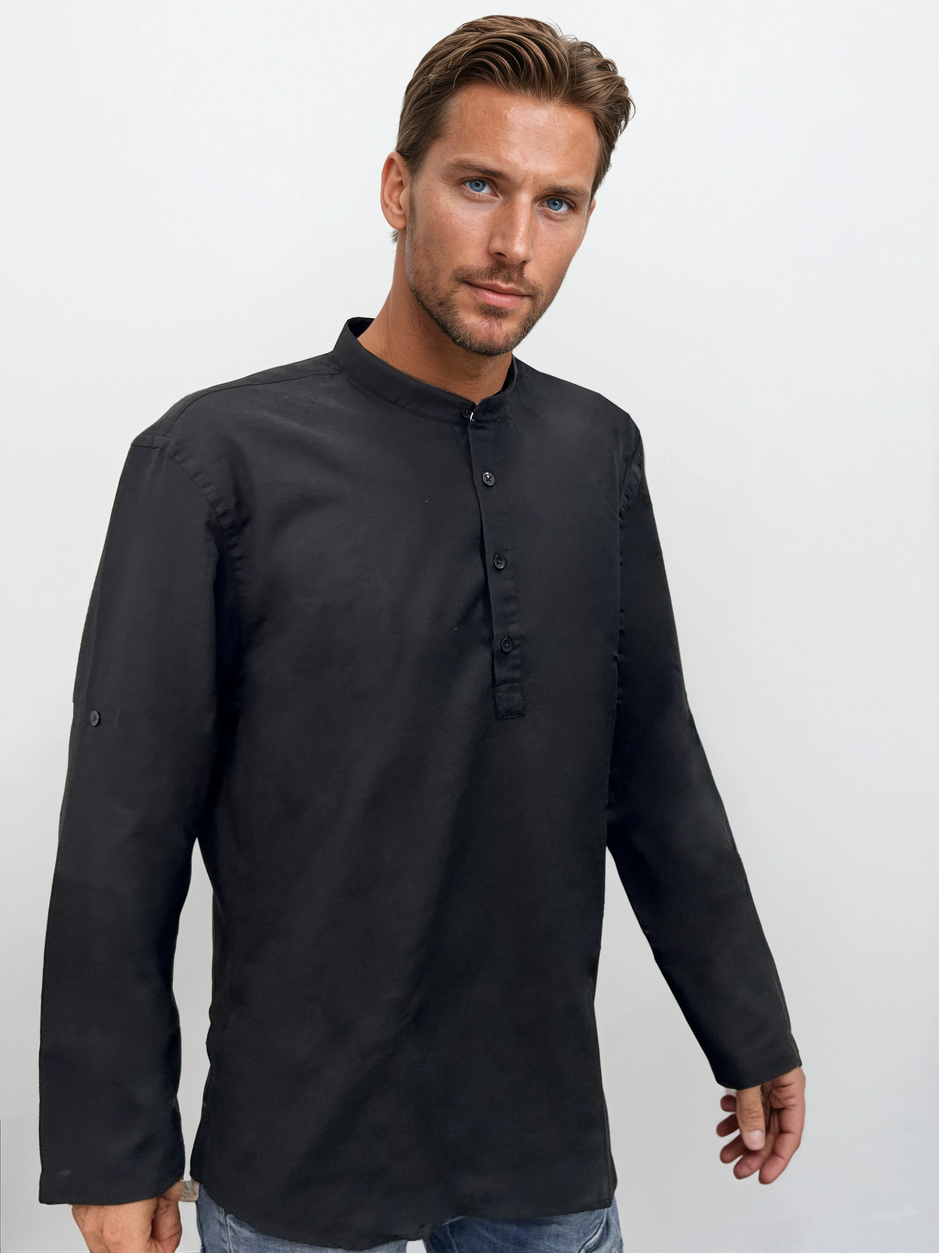 Μια μακριμάνικη ανδρική πουκαμίσα από λινό ύφασμα είναι ιδανική για τις ζεστές μέρες του καλοκαιριού, προσφέροντας άνεση και στυλ. Το λινό, γνωστό για την αναπνεύσιμη και φυσική του υφή, δίνει μια αίσθηση δροσιάς, καθώς επιτρέπει στον αέρα να κυκλοφορεί ελεύθερα.
