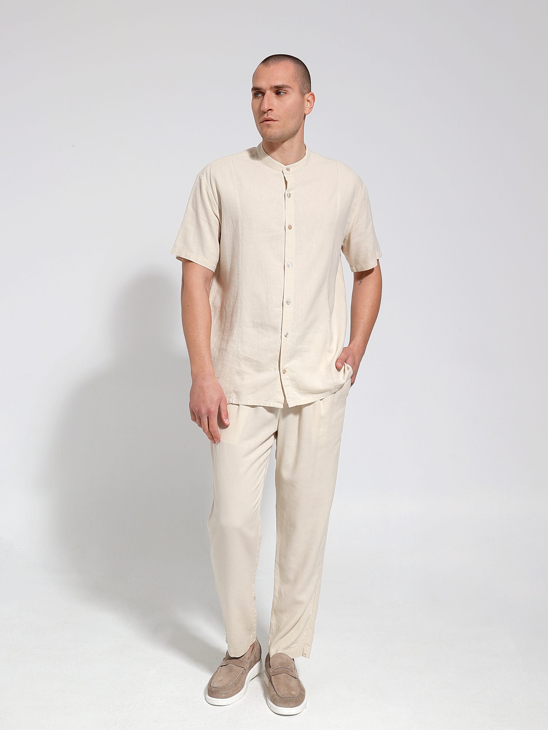 Λινό Πουκάμισο Κοντομάνικο BALI-2 6611 Μπεζ
