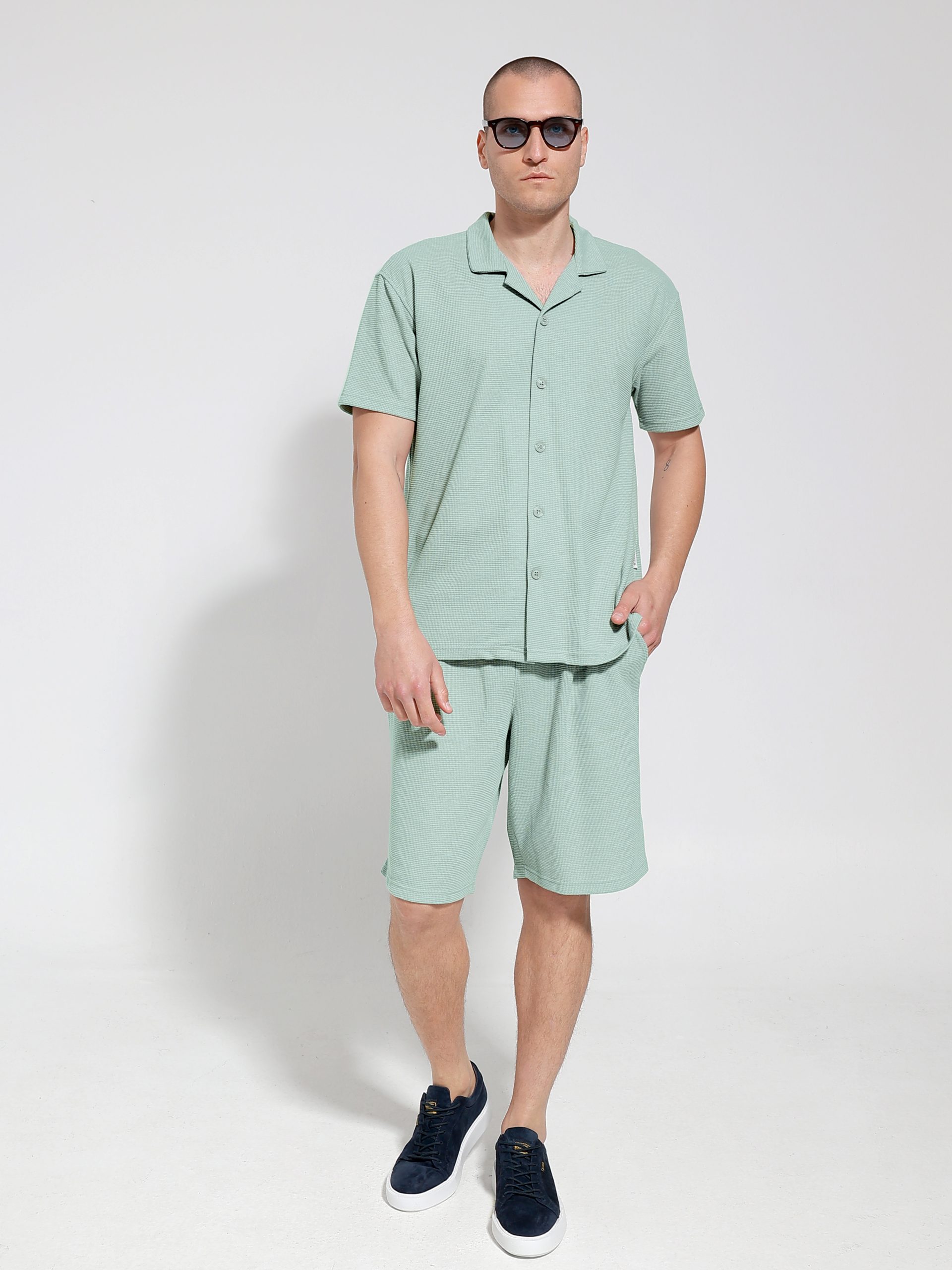 Ανακαλύψτε το ανδρικό κοντομάνικο πουκάμισο-μπλούζα, ιδανικό για κάθε καλοκαιρινή εμφάνιση. Το σχέδιο του κλείνει με κουμπάκια έως κάτω, προσφέροντας άνεση και στυλ σε κάθε σας βήμα.