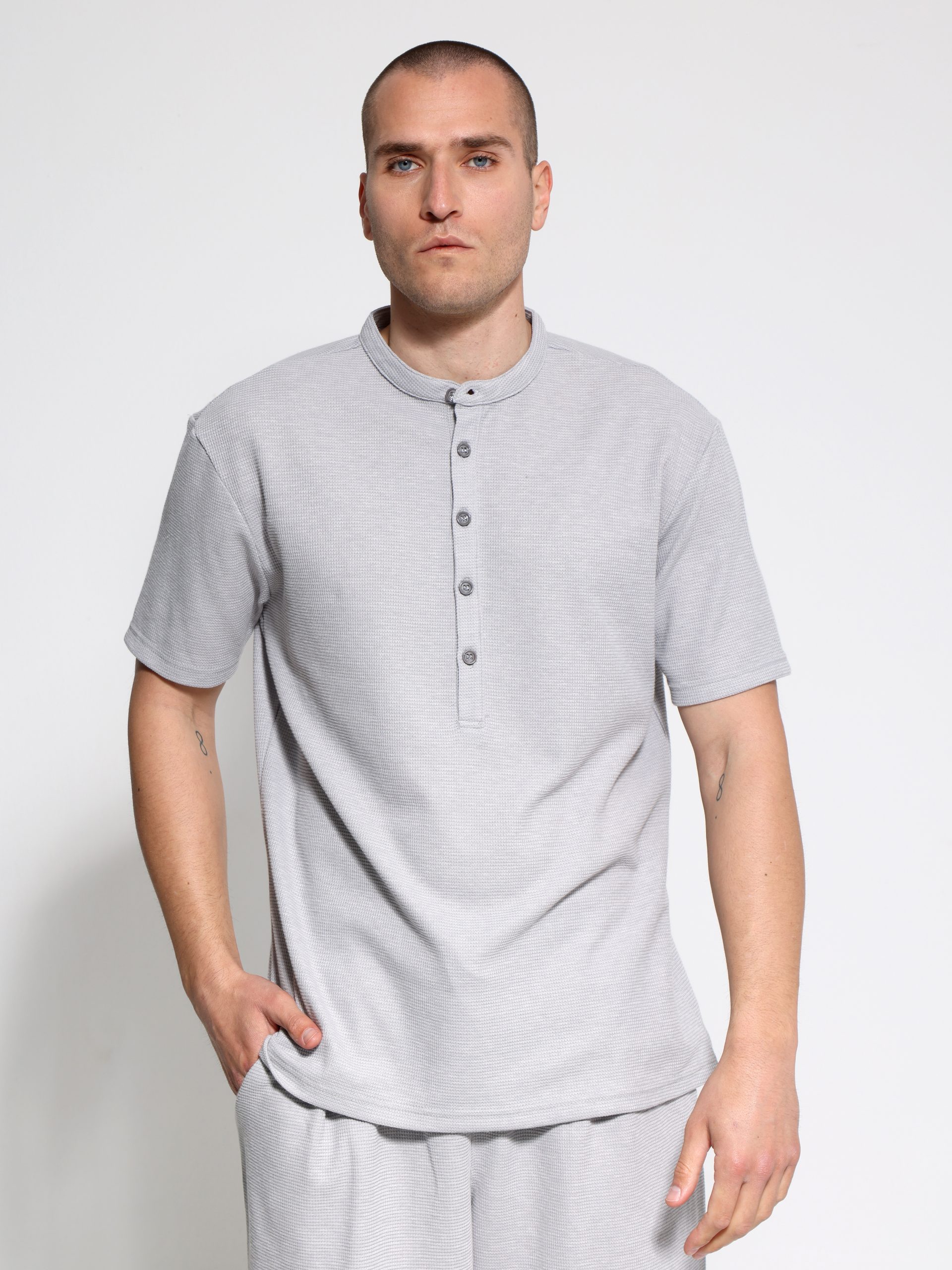 Ανανέωσε τώρα την γκαρνταρόμπα σου με αυτή τη must-have ανδρική μπλούζα με μοντέρνο στυλ και πρακτικές λεπτομέρειες. Ένα χαρακτηριστικό στοιχείο της είναι τα κουμπάκια στο λαιμό, τα οποία προσθέτουν μια κομψή και casual πινελιά. Η μπλούζα αυτή μπορεί εύκολα να φορεθεί τόσο σε καθημερινές όσο και σε πιο ημιεπίσημες περιστάσεις, ανανεώνοντας την ανδρική γκαρνταρόμπα με στυλ και άνεση.