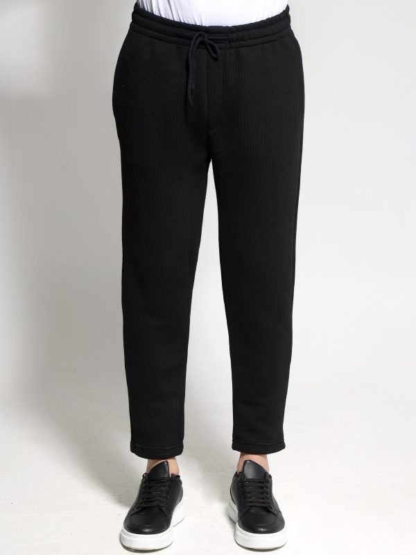 Ανδρικό Ριγέ Φορμοπαντέλονο Με λάστιχο & Κορδόνι 50-102 Μαύρο